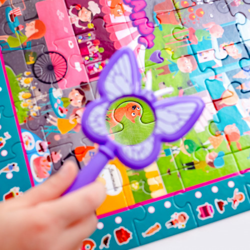 Відчуйте себе справжнім детективом! Скористайтеся лупою і відшукайте на пазлі персонажів, солодощі і різні атрибути.